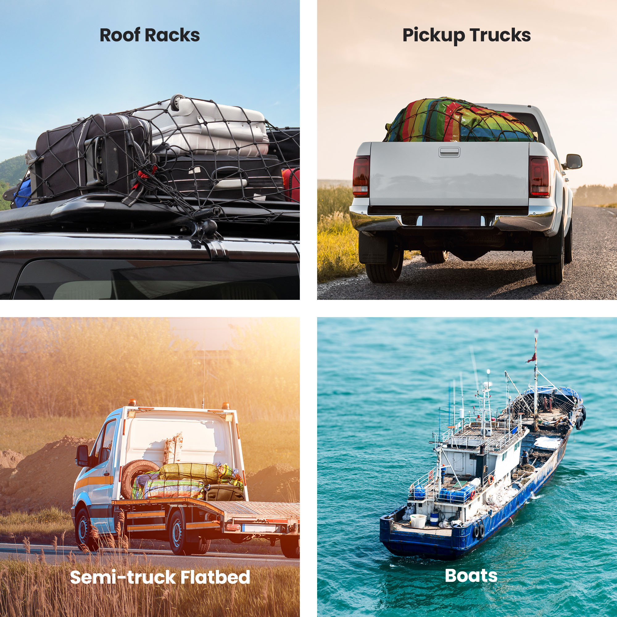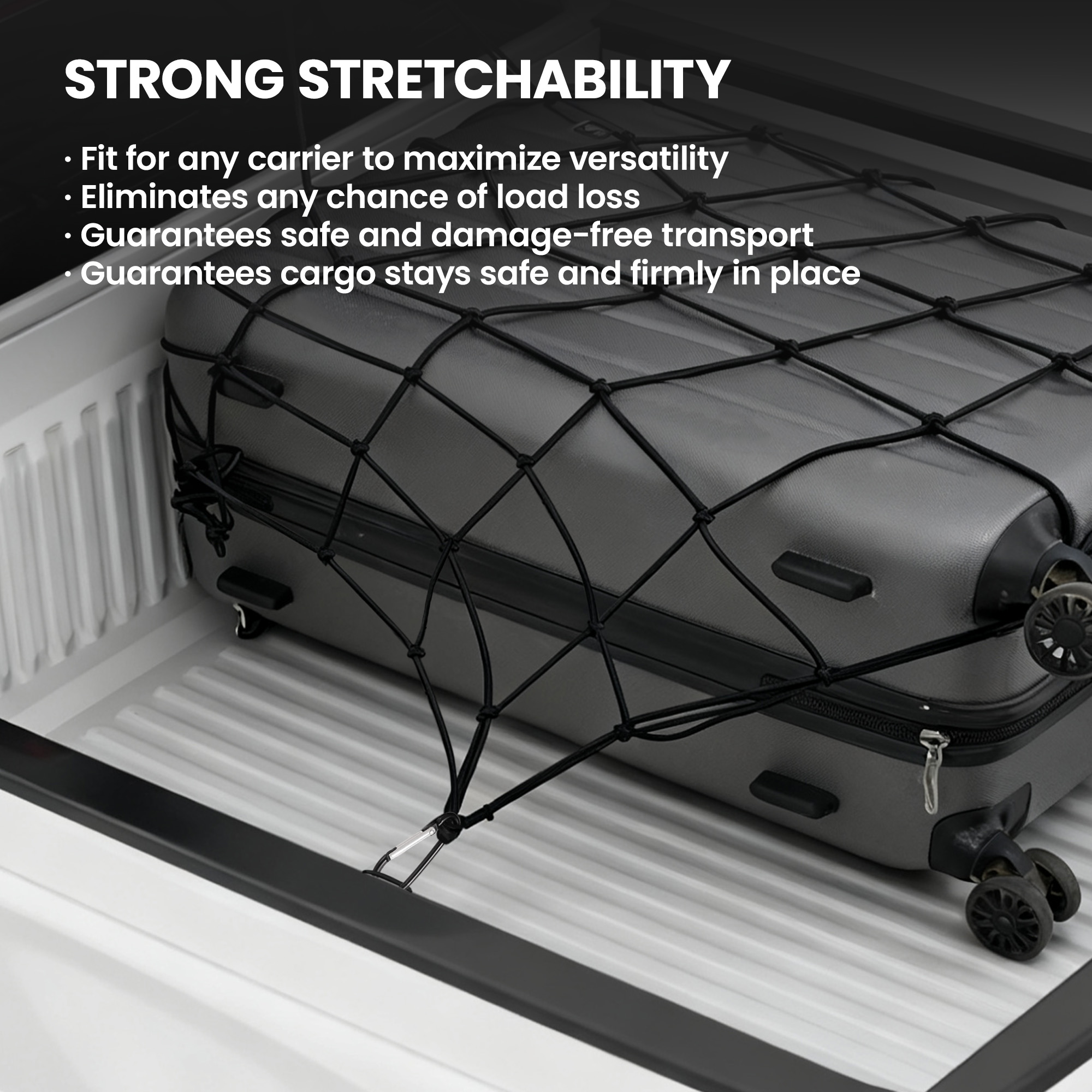 • CARGO PROTECTION: Designed to fit a variety of carriers, this net enhances versatility while preventing load loss and ensuring safe, damage-free transportation.