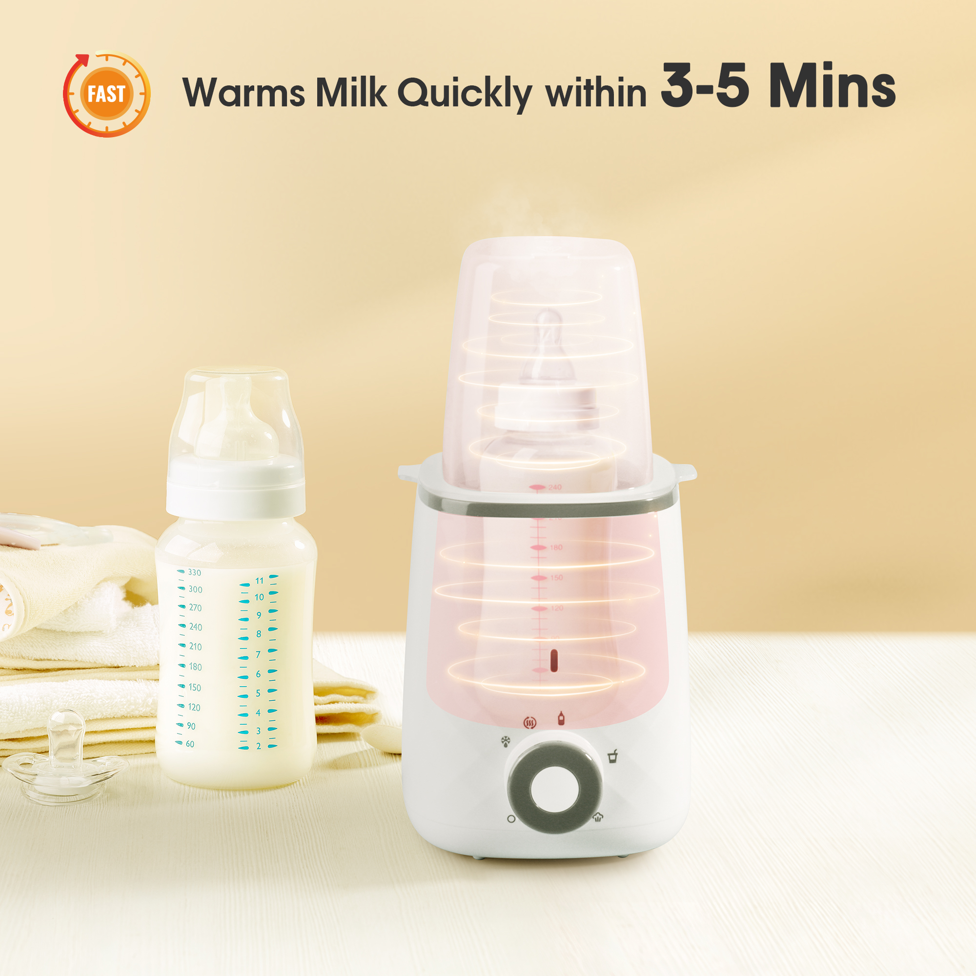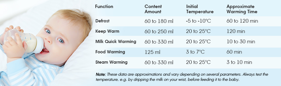 5-IN-1 MULTIFUNCTIONAL: The Baby Bottle Warmer provides quick milk warming, baby food warming, steam warming, defrosting and keeping warm in a single unit, which helps parents to prepare the milk at any time without any hassle.
