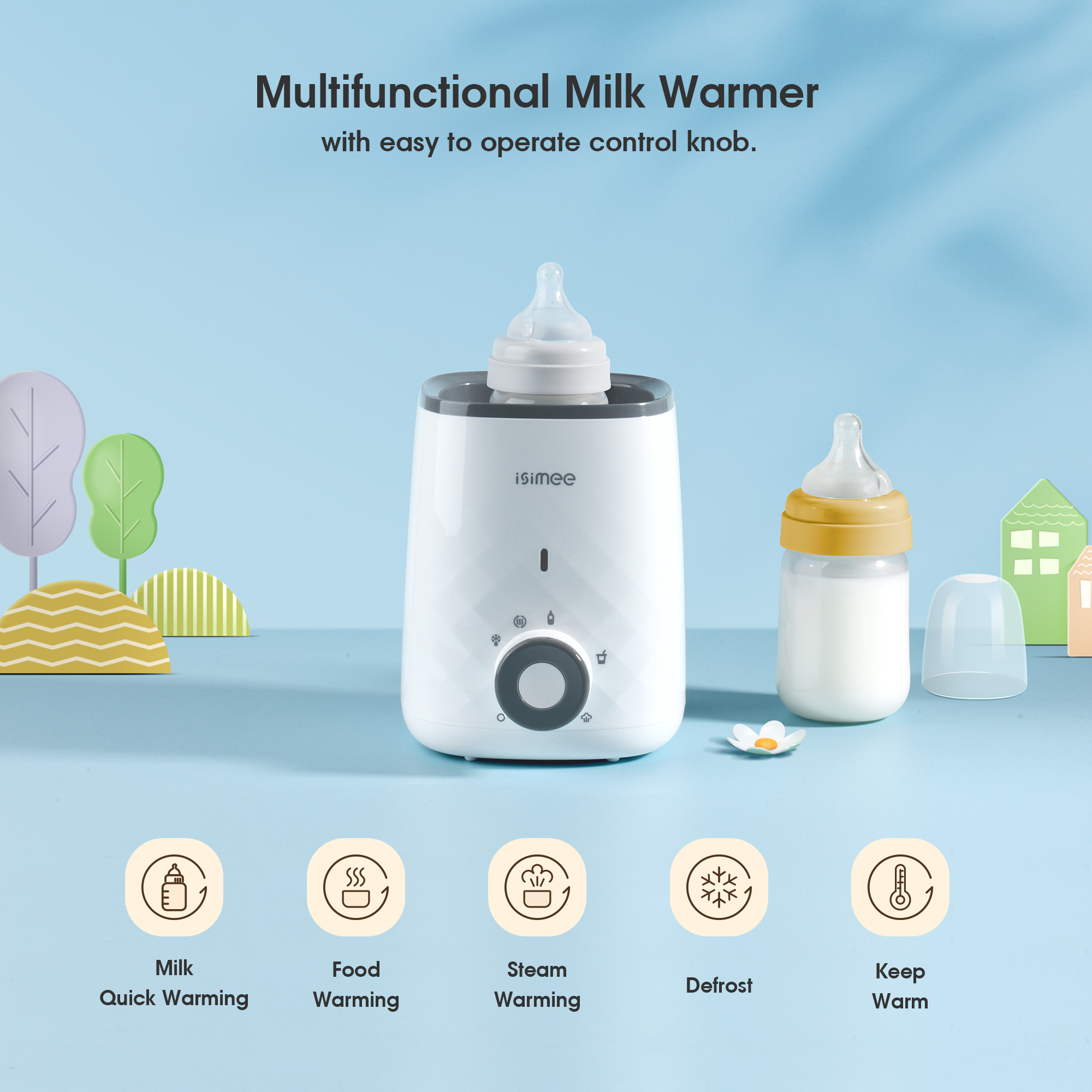 EASY OPERATION: Easy one-step operation with dialing the control knob to your desired function. Turn the bottle warmer off when the estimated warming duration has expired.