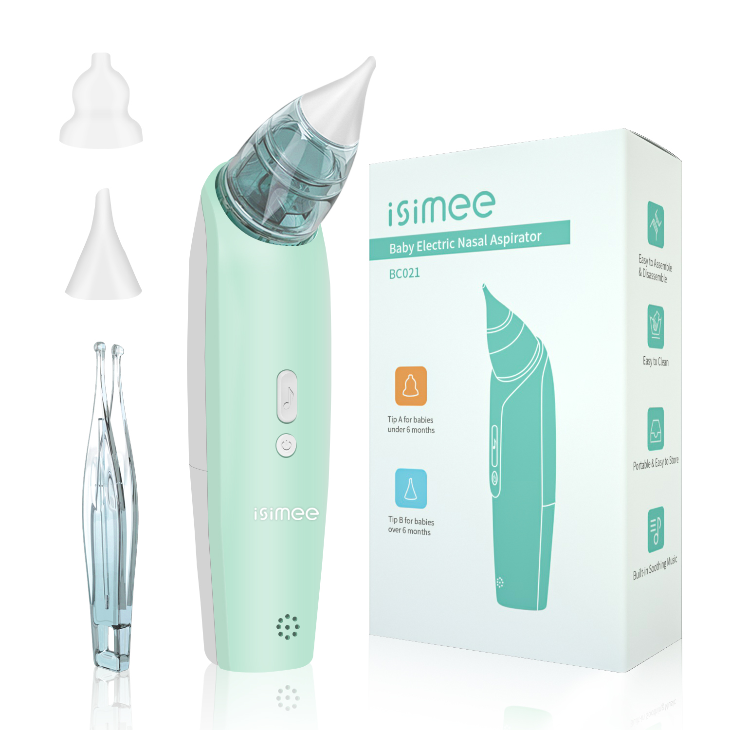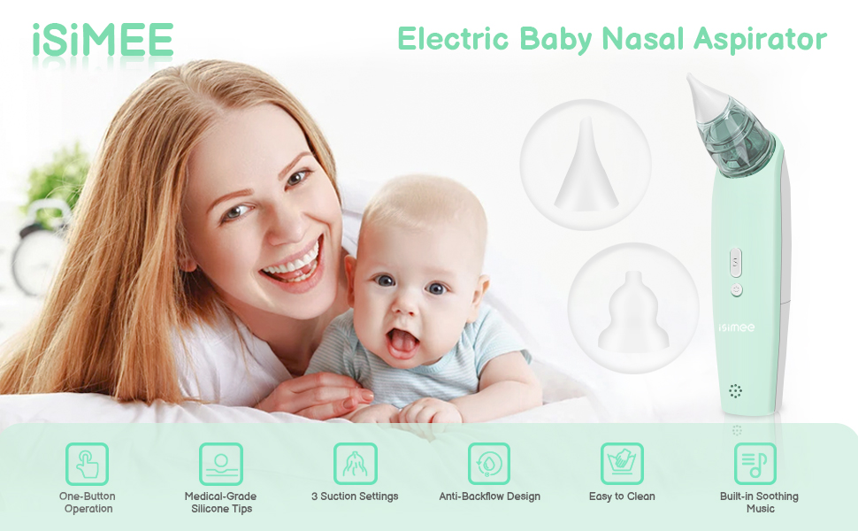 iSiMEE Baby Nasal Aspirator, Safe Hygienic Electric Nose Suction, Mucus Sucker with 2 Sizes of Nose Tips