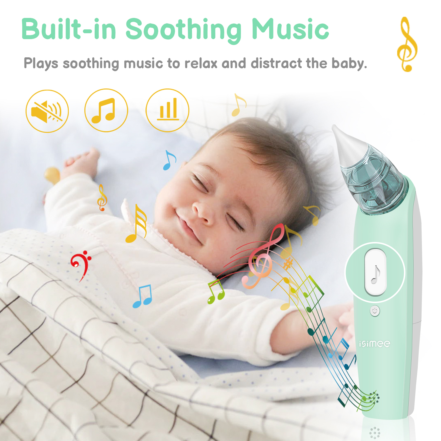 iSiMEE Baby Nasal Aspirator, Safe Hygienic Electric Nose Suction for Baby, Automatic Mucus Sucker for Infants, Baby Nose Cleaner with 2 Sizes of Nose Tips, Mucus Remover with Music for Toddlers